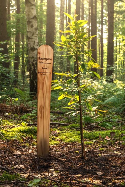 - 🏷️ Persönliches Holzschild: Neben dem Baum wird ein Holzschild angebracht mit dem Namen des Paten oder der Person, für die der Baum gepflanzt wurde