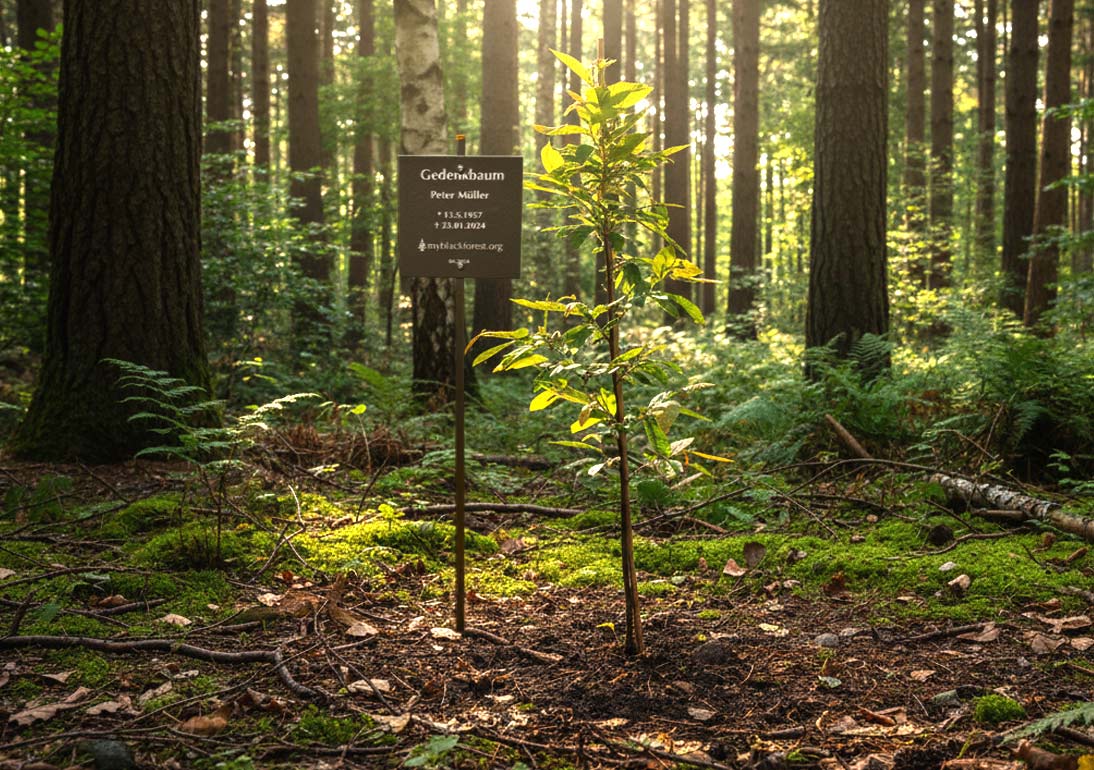 Der Premium-Gedenkbaum verbindet Natur und Gedenken auf einzigartige Weise. Er wächst weiter, während die Erinnerung an einen geliebten Menschen bestehen bleibt – ein lebendiges Vermächtnis im Schwarzwald.